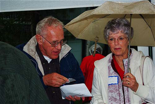 Getting that badge out is Bill Tuma with wife Karen